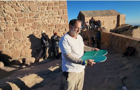 פעיל האקלים ויזם האנרגיה הירוקה יוסף אברמוביץ ניפץ לוחות ברית ירוקות על פסגת הר סיני במחאה על כך שמדינת ישראל