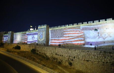 לרגל ה-4 ביולי: עיריית ירושלים האירה את חומות העיר העתיקה בדגלי ישראל וארה"ב