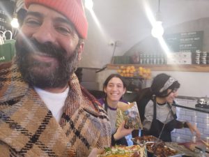 זה התחיל ב׳אריכא סביח׳, שם התפנק הצמד על סביח משגע וסלטים משובחים שהכין הבעלים, איתי אריכא, המשיך לסיור עם אווירה מחשמלת בתוך השוק של ישראל, ונחתם בזיקוקים, שירים וצ׳ייסרים עם תור ארוך לסלפי עם האיש והנזם.
