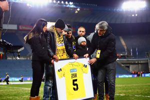 משפחתו של אהרון נכנסה לכר הדשא וזכתה לאהבה ומחיאות כפיים מהקהל ביציע. אלי אוחנה העניק למשפחה חולצה הנושאת את שמו של אופק ז"ל.