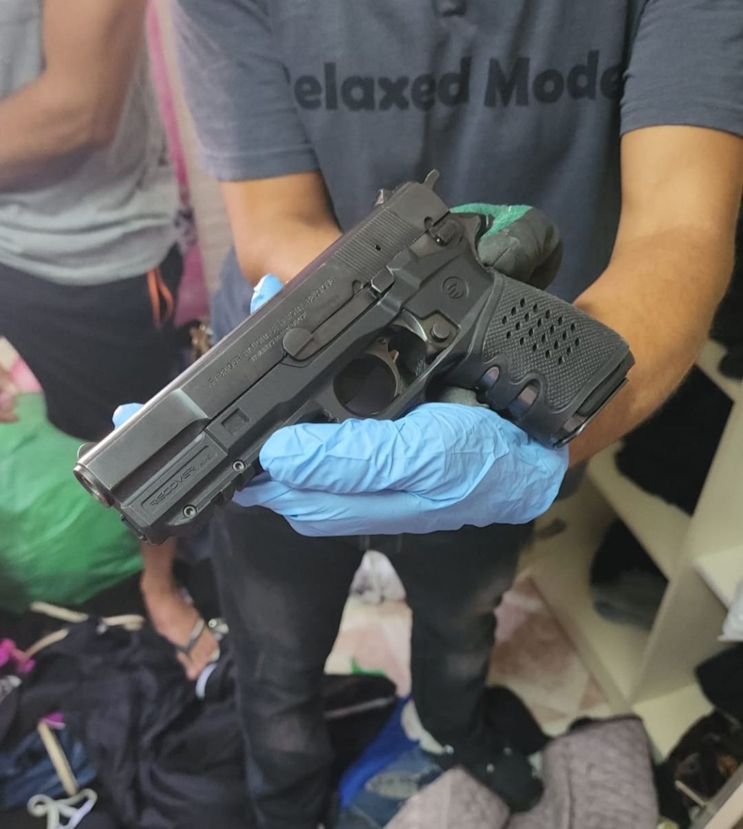 הנשק נתפס במהלך חיפוש שביצעו השוטרים בתוך ארון הבגדים, בחדרו של החשוד.