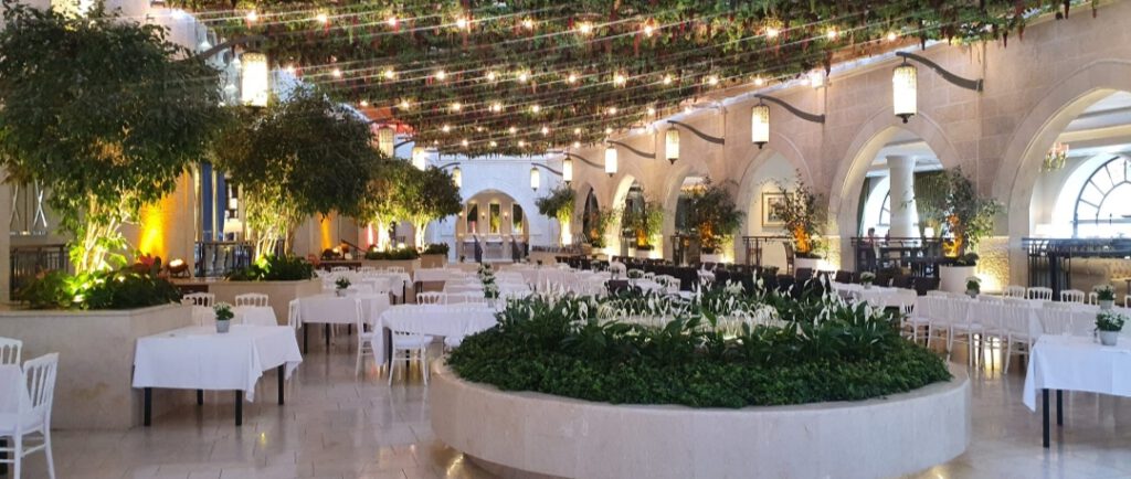 הסוכה ממוקמת בקומת הלובי ומוצבת תחת גג זכוכית הניתן לפתיחה וסגירה בהתאם למזג האוויר ותוכנן במיוחד באופן כזה שישמש כסוכה חיה לאורחים במהלך ימי החג.