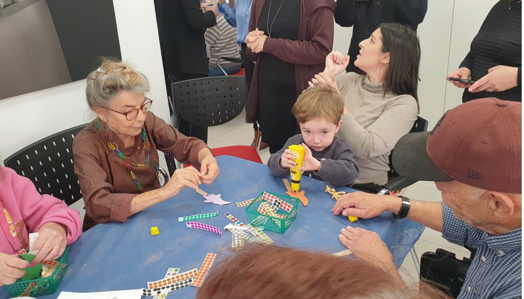 עשרות ניצולי שואה מירושלים נפגשו השבוע למפגש מיוחד במינו, לפעילות מרגשת יחד עם ילדי גן 'אנפה' בגילאי 3 ו-4 משכונת ארנונה בירושלים. הפעילות שנערכה ביוזמת מכון ירושלים לצדק, במוזיאון FOZ במרכז העיר, הפכה את חבורת הילדים והמבוגרים לקבוצה מגובשת אחת שביחד גזרו, הדביקו וצבעו בצבעים שמחים 'גמדים על מקל ארטיק' הכינו כחלק מהמופע של שירי אריק איינשטיין שהיה באירוע.